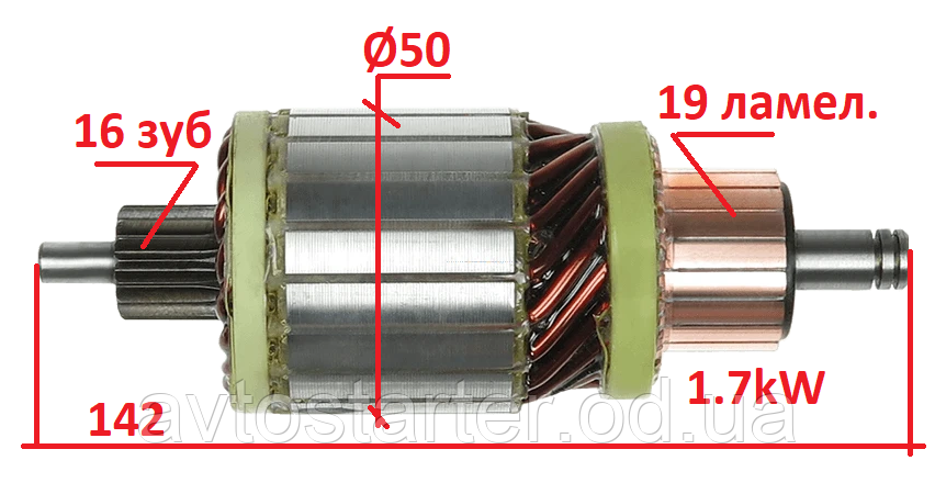 довжина якоря 141.8, зовнішній Ø якоря 49.9, кол.шліц 16, міць 1.7kW