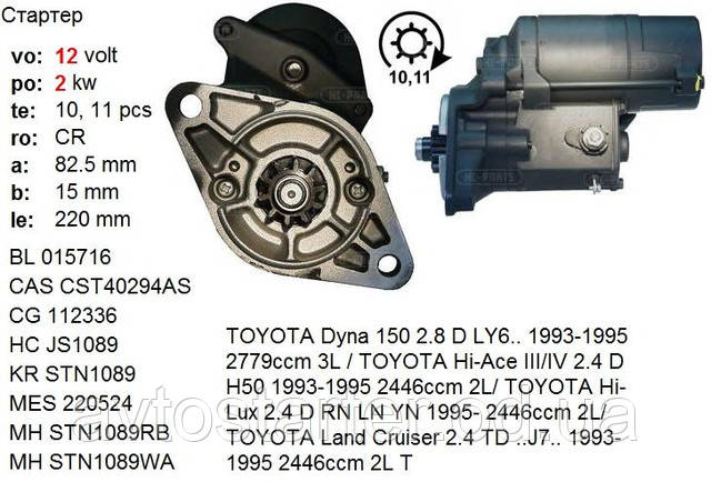 | Кросс-номери | Denso 2810054310; 134369, 028200-2140, 028200-7430, 5-81121029-0, RF01-24-705, IM3067, 2033-005RS, 15425-63071, 28160-54070, 28160-54071, 28160-87705, AM-5001, WSA1940 |