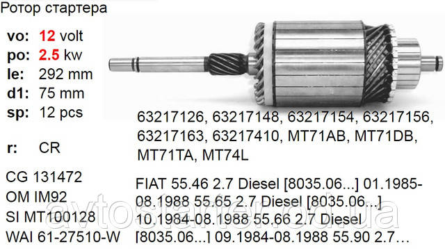 | Кросс-номери | Magneti Marelli 063217410010 |