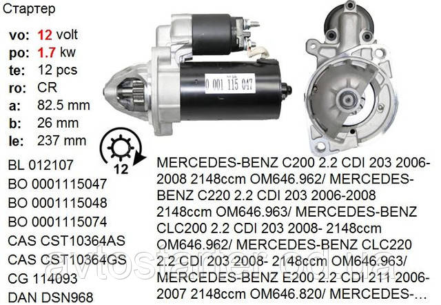 | Кросс-номери | Bosch 0986021360; Denso 4280004600; Lucas LRS02377; Mercedes-Benz A0061517401 |